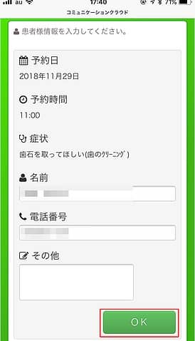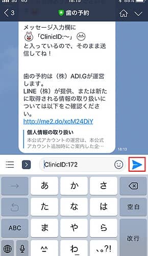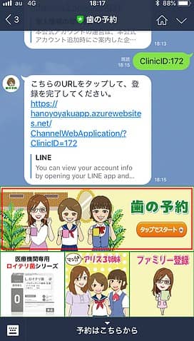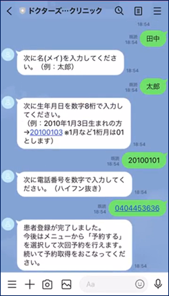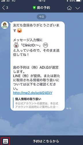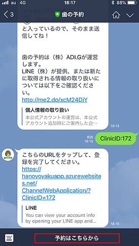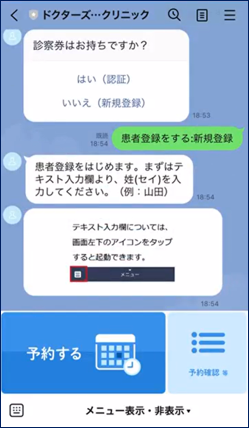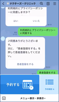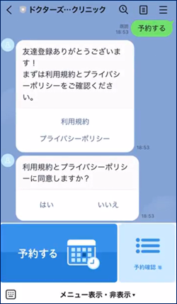 友達追加後、画面内の〈予約する〉をタップし、トーク画面の指示に沿って、患者登録を進めてください。