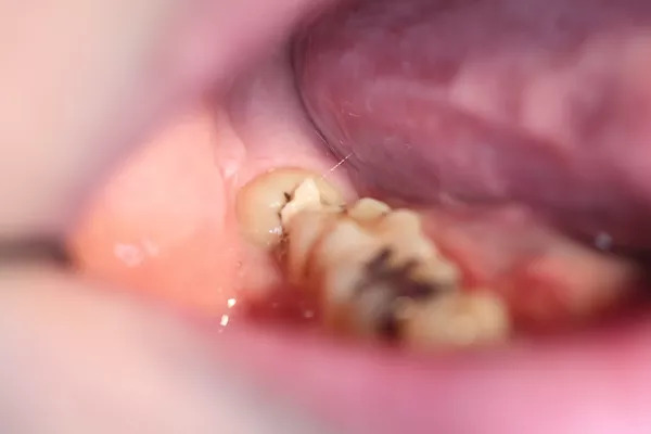 この隙間は下の方が深歯ブラシが届かず、このままでは親知らずと手前の歯が2本とも虫歯になってしまうので抜いたほうが良いケースです。